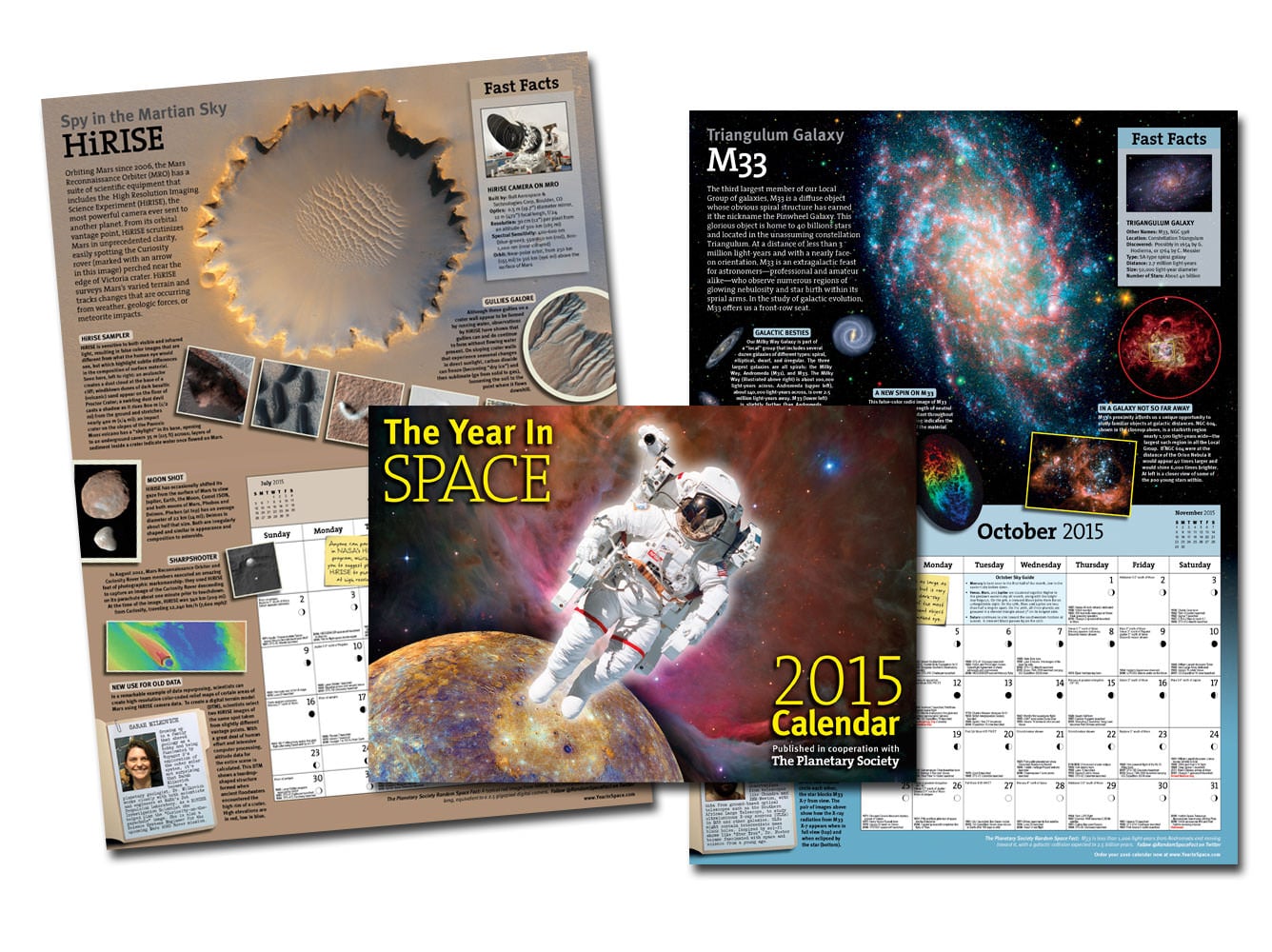 This is a gorgeous wall calendar that has over 120 beautiful photos of space, and is larger, more lavishly illustrated, and packed with more information than any other space-themed wall calendar. It's a huge 16 in. x 22 in. when hanging up!