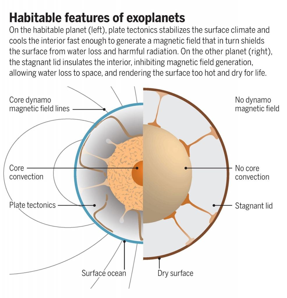A lot of the headlines and discussion around the habitability of exoplanets is focused on their proximity to their star and on the presence of water. It makes sense, because those are severely limiting factors. But those planetary characteristics are really just a starting point for the habitable/not habitable discussion. What happens in a planet's interior is also important.