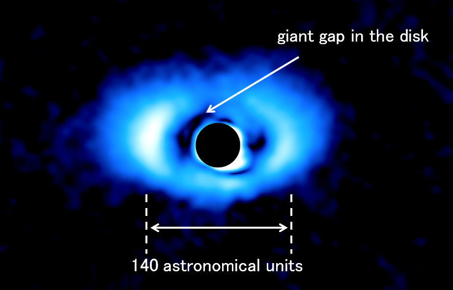 planets, based on a large gap found in the disk of gas and dust surrounding a Sun-like star 460 light-years from Earth.