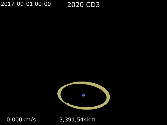 For only the second time in history, astronomers have discovered a new, natural-origin, minimoon orbiting the Earth. The minimoon, known as 2020CD3 (CD3 for short), was first discovered by Kacper Werizchos and Teddy Pruyne using data from the Catalina Sky Survey. Once CD3's orbit was determined to be geo-centric, Queens University Belfast Post-Doctoral Research Fellow Dr. Grigori Fedorets assembled a team of 23 astronomers worldwide to make careful observations of the object to determine its identity. Based on the team's findings, a paper was published on November 24, 2020, in the Astronomical Journal, characterizing the minimoon.