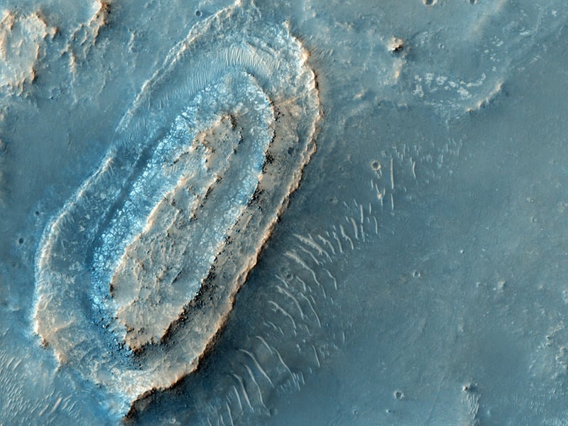 Maybe you could even find a really unusual feature on Mars, such as this race-track-like feature that may one day be a landing site for a future mission to the Red Planet. HiRISE images will help determine if this spot is sufficiently safe for landing, such as not too many boulders, steep slopes, or too many high speed MASCAR races -- (that's the Mars Association for Super Cool Aerodynamical Racing). If it is safe, it may be considered for the 2011 Mars Science Laboratory or the 2018 rovers that ESA and NASA are working on for a join mission.