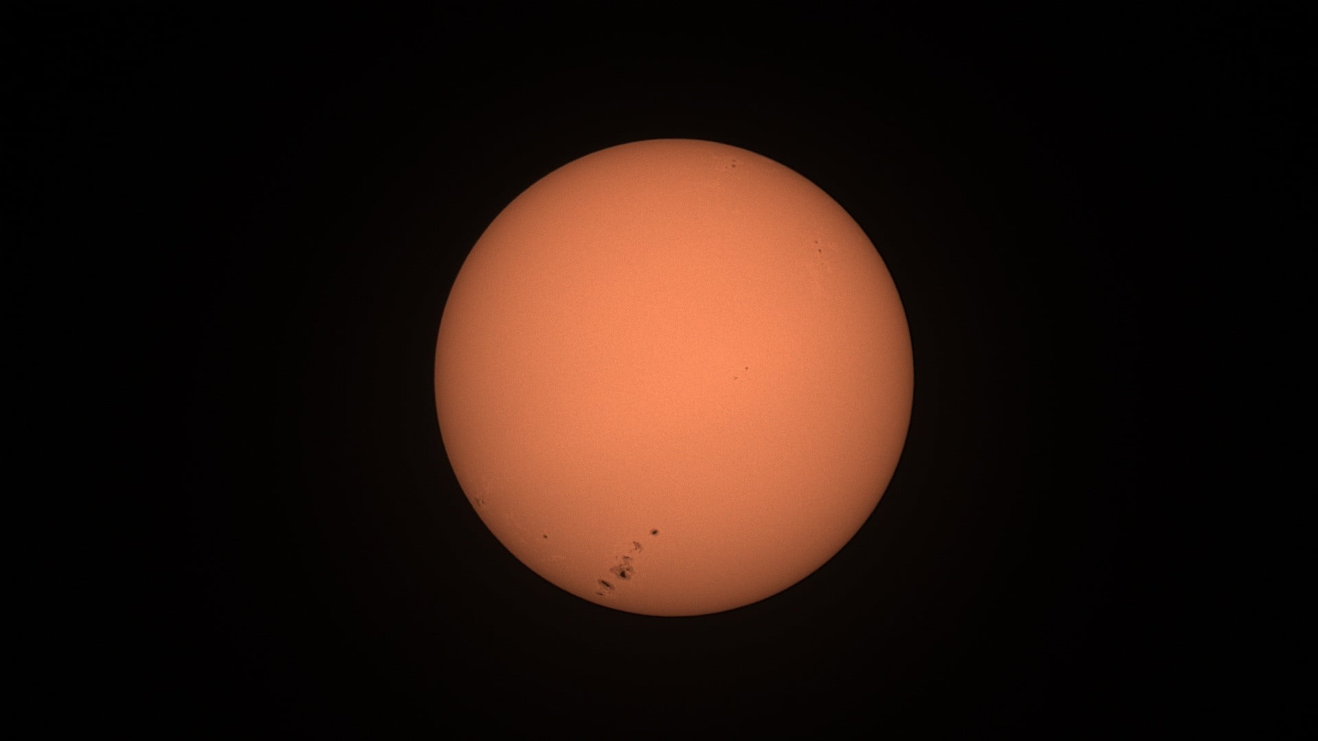 A massive sunspot emerges from around the solar limb, in the first week of December 2025. Credit: Dave Dickinson-Shot with a Dwarf Labs Dwarf3 smartscope.