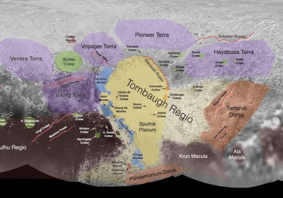 Informal names given to Pluto's surface features. Credit: earthsky.org