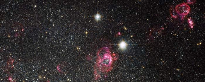 Here the remnants of mature and dying stars have left thick waves of dust and gas, carved into shape by stellar winds. Some ended their lives as supernovae - sending rippling shockwaves through the thinner material to hang in space like fantasy ribbons. With no dense nucleus to deform it like an elliptical galaxy, nor distorting arms like a spiral, this irregular star-forming factory is the perfect place for astronomers to take a close look stellar formation in a new way.