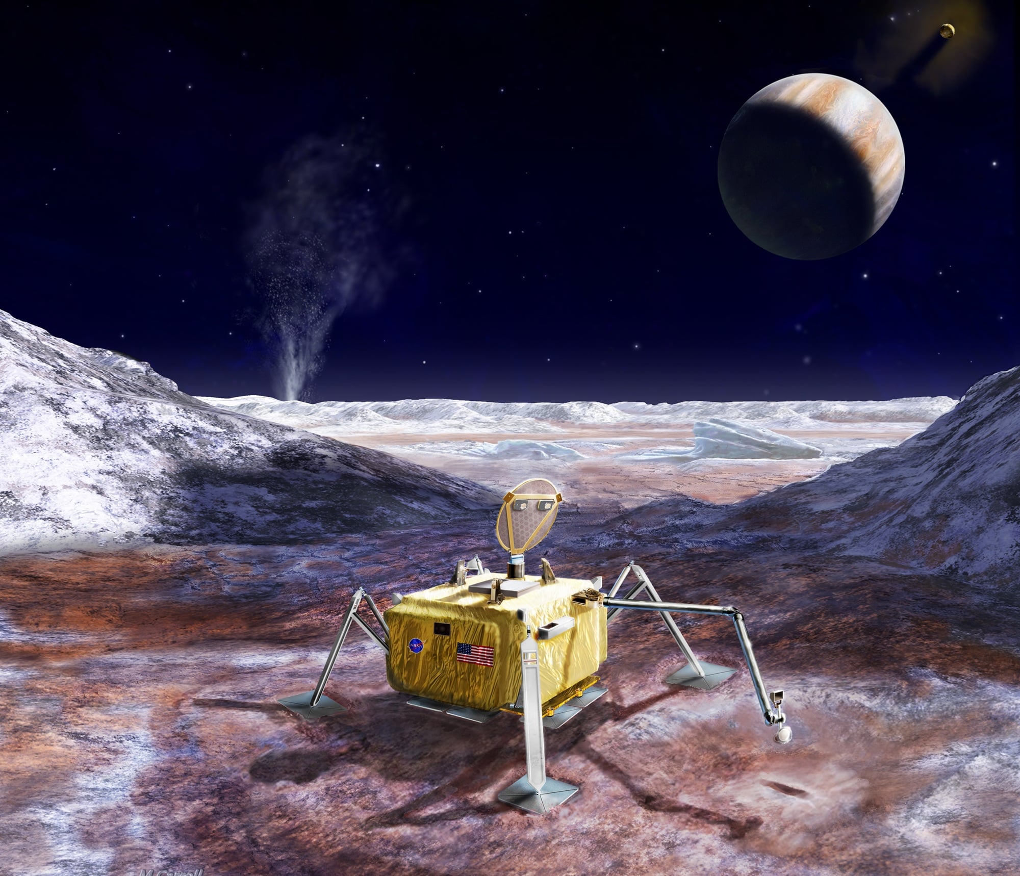 Currently, two astrobiology missions are headed for Europa: NASA'sEuropa Clipper**mission and the ESA's JUpiter Icy Moon Explorer(JUICE). The former will arrive by 2030 and will begin observing Europa's surface, probing its interior structure, and characterizing the surrounding space environment. The latter will reach Jupiter the following year, performing similar studies of Callisto, Ganymede, and Europa. Since Ganymede and Callisto are farther from Jupiter, they experience less tidal heating, resulting in less cryovolcanism.
