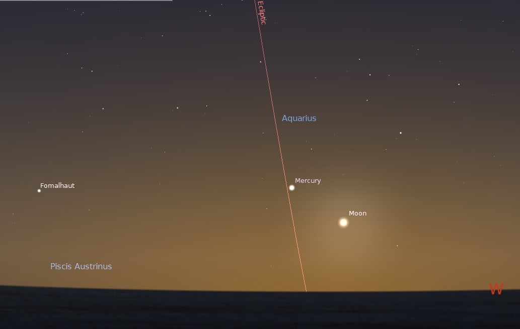 in the constellation Piscis Austrinus just 20 degrees to the south of Mercury?