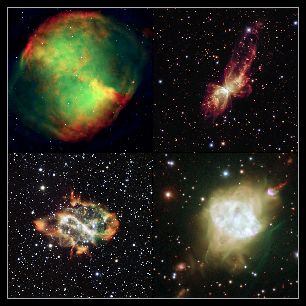 We know that stars similar to our Sun end their lives shedding their outer layers into space. Like a reptile's intact skin casing, this stellar material forms a huge variety of shapes known as planetary nebulae. One of the more common forms is bipolar – which creates a bowtie or butterfly shape around the progenitor star.