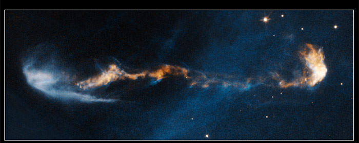 [/caption]Don't you know that you are a shooting star... Thanks to the NASA/ESA Hubble Space Telescope, an international team of scientists led by astronomer Patrick Hartigan of Rice University in Houston, USA, has done something pretty incredible. Using photos and information gathered from the last 14 years of observations, they've sewn together an unprecedented look at young jets ejected from three stars. Be prepared to be "blown" away...