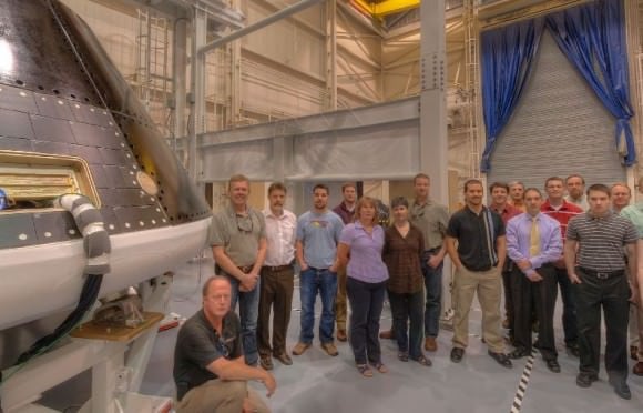 [caption id="attachment_88443" align="aligncenter" width="580" caption="The Orion MPCV along with some of the people on the team that is developing and testing the capsule at the Lockheed Martin facility in Boulder, Colorado. Credit: John O'Connor, NASATech.net. Click for large, pan-able image."]