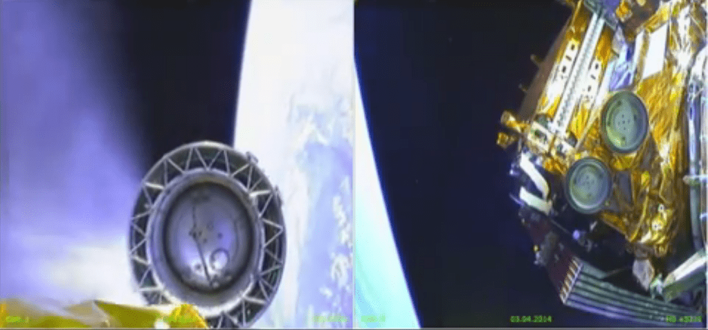 "Arianespace's successful Soyuz Flight VS07 -- which deployed Sentinel-1A to Sun-synchronous orbit -- gave the world a front-row seat in space," the company stated on YouTube. "Cameras mounted on the Soyuz' Fregat upper stage captured the spectacular footage ... as Sentinel-1A was separated at approximately 700 km [434 miles] above the Earth to commence its life in orbit."