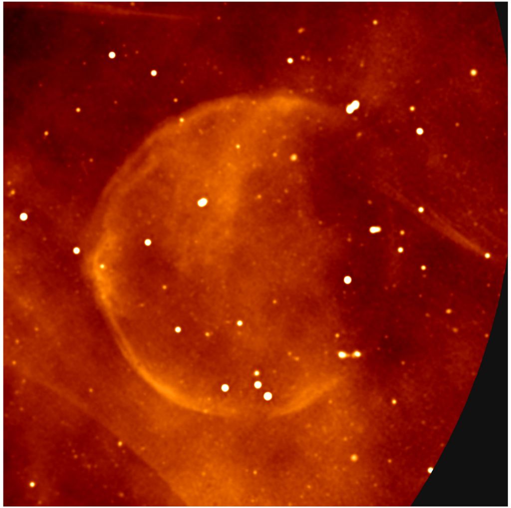 MeerKAT spotted some other incredible things within our galaxy's busy downtown. The image below shows the spherical supernova explosion (rare for supernovae images which are usually more asymmetrical) and features an unknown object resembling a comet (though not a comet) toward the right which might be streaking past leaving behind a wake.