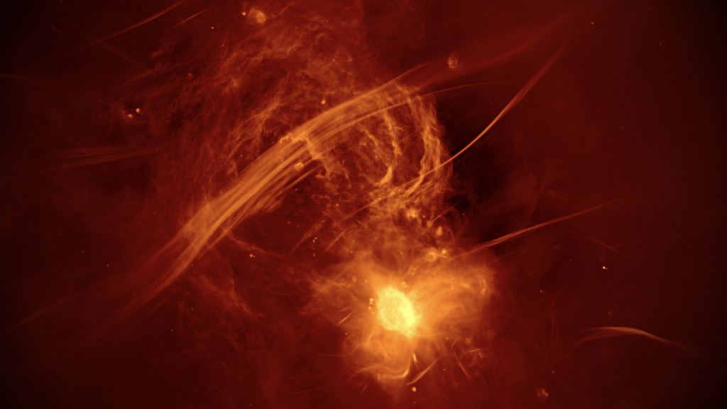 Will Our Black Hole Eat the Milky Way? - Video by Fraser CainIf an interaction between the black hole outbursts and supernova explosions creates the filaments, that interaction would explain why the filaments are unique to this part of the galaxy. They also seem to appear only within the radio bubbles themselves. The filaments have also captured cosmic rays – high energy particles created by stars - in their magnetic fields. The particles can be dated essentially leaving a time stamp on the filaments. The cosmic ray time stamp matches the period of outburst from the black hole further leading researchers to believe the filaments are related to the black hole outburst. The MeerKAT images make it possible to catalogue each of the filament clusters to learn more about them and therefore the story of the centre of our galaxy.