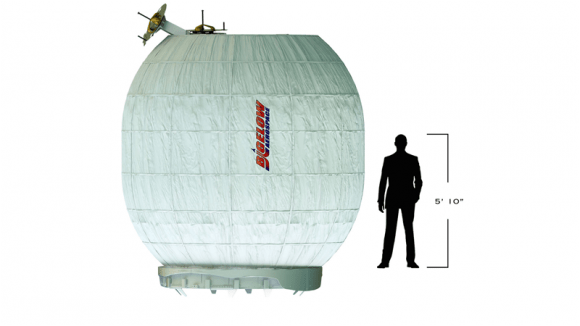 The BEAM with human figure for scale. Image: Bigelow Aerospace.[/caption]