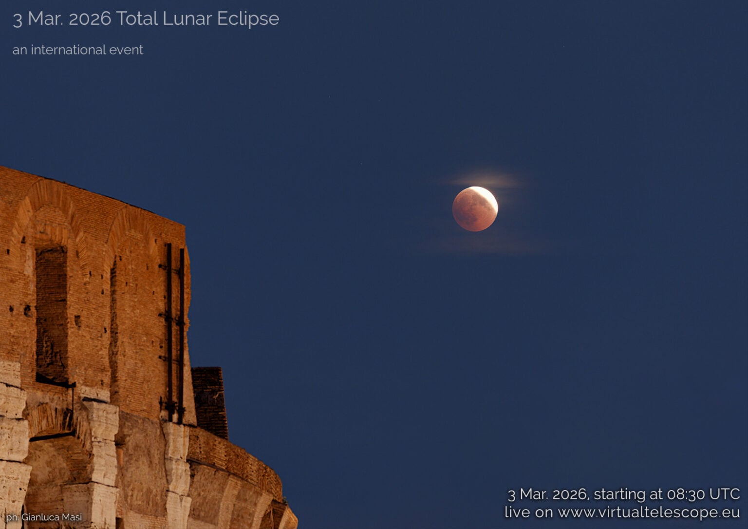 Clouded out, or simply live in the wrong hemisphere? Astronomer Gianluca Masi and the Virtual Telescope Project will carry the eclipse live early Tuesday morning starting at 8:30 Universal Time (UT).