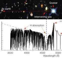 Astronomers therefore came up with other ways to study distant galaxies: they use quasars, most probably the brightest distant objects known, as beacons in the Universe.