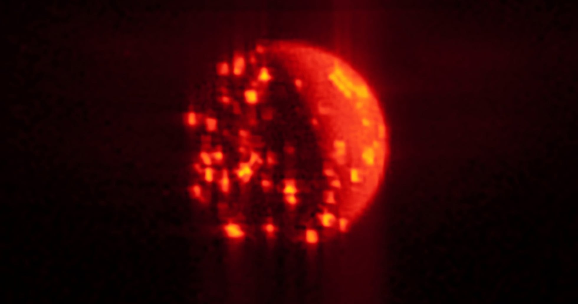 Juno's Io looks like it's on fire. Because JIRAM sees in infrared, a form of light we sense as heat, it picked up the signatures of at least 60 hot spots on the little moon on both the sunlight side (right) and the shadowed half. Like all missions to the planets, Juno's cameras take pictures in black and white through a variety of color filters. The filtered views are later combined later by computers on the ground to create color pictures. Our featured image of Io was created by amateur astronomer and image processor Roman Tkachenko, who stacked raw images from
