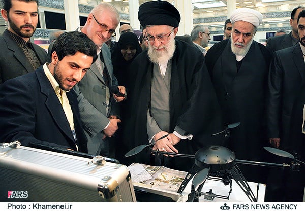 thanks to reader Robert McCelland, we now have an actual picture of the Zohal instead of the hoaky flying saucer image that was included in the Fars article (see below). It is not really all that big — more like a remote controlled toy helicopter — but reportedly the Zohal is equipped with an auto-pilot system, GPS and two separate imaging systems with full HD 10 mega-pixel picture quality and is able to take and send images simultaneously. It was unveiled in a ceremony attended by Supreme Leader of the Islamic Revolution Ayatollah Seyed Ali Khamenei at an exhibition of strategic technologies.