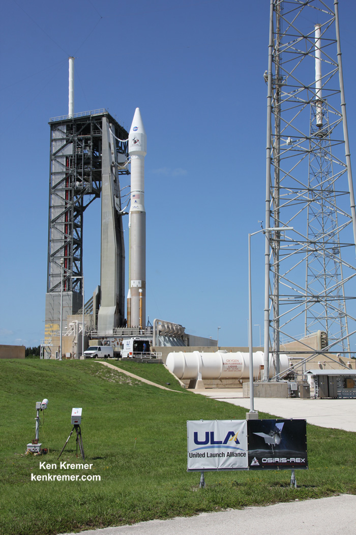 NASA's OSIRIS-REx asteroid sampling spacecraft is poised for liftoff on a 7 year Journey to asteroid Bennu and Back atop a United Launch Alliance Atlas V rocket on Sept. 8, 2016 from Space Launch Complex 41 on Cape Canaveral Air Force Station, FL. Credit: Ken Kremer/kenkremer.com[/caption]