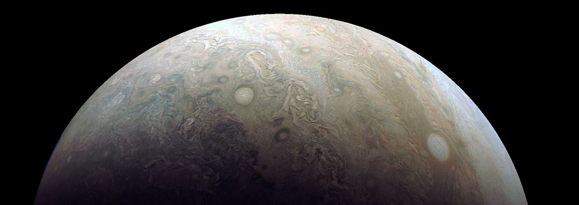 This is the original image sent by JunoCam on Dec. 11 and features the eighth in a string of large storms in the planet's southern hemisphere. Credit: NASA/JPL-Caltech/SwRI/MSSS[/caption]