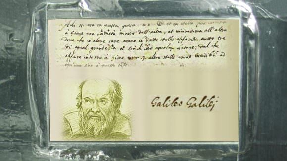 In addition to its scientific suite, the Juno spacecraft also carries a commemorative plaque dedicated to Galileo Galilei. The plaque was provided by the Italian Space Agency and depicts a portrait of Galileo, as well as script that had been composed by Galileo himself on the occasion that he observed Jupiter's four largest moons (known today as the