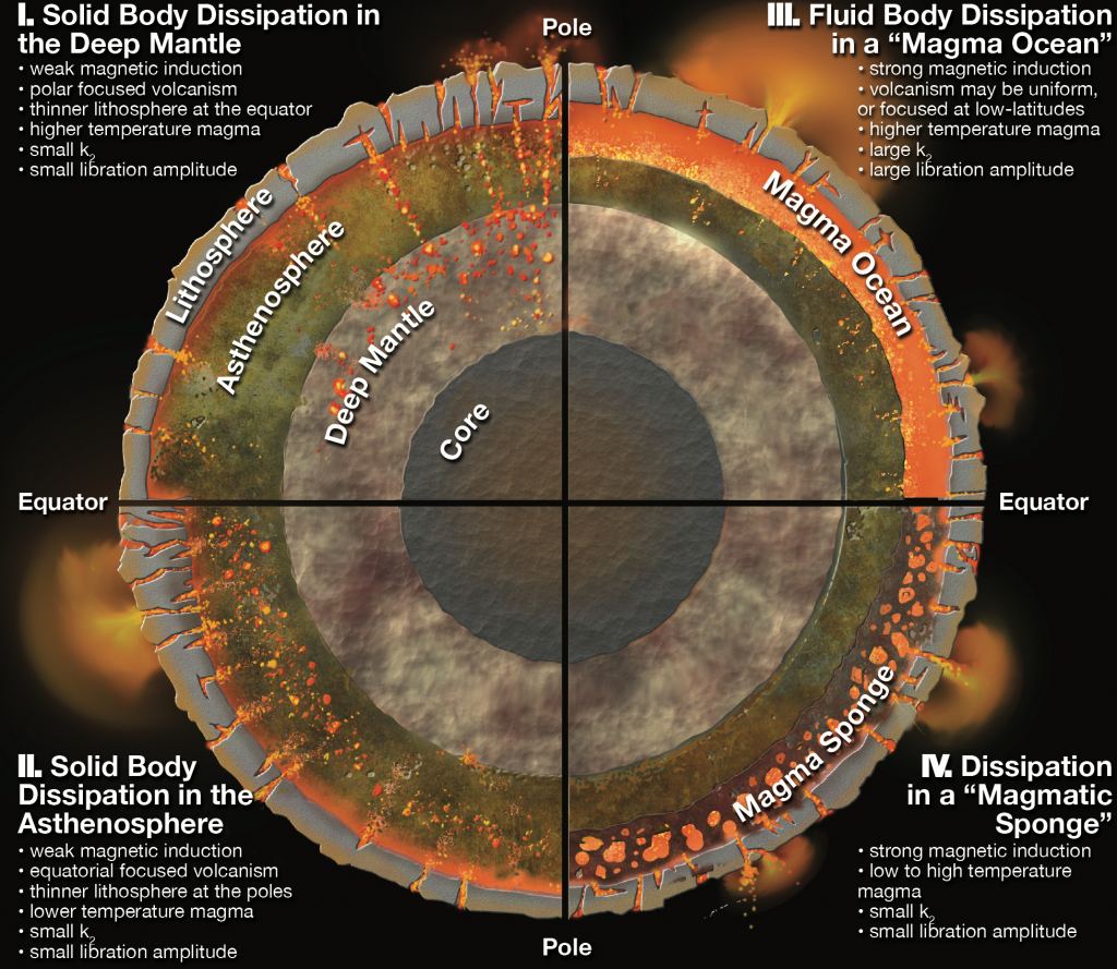 There are unanswered questions about Io, its volcanism, and its interior composition. Scientists know that tidal heating from Jupiter is the moon's primary heat source, but they aren't certain how the heat is distributed inside. They are also uncertain about the extent of Io's magma ocean.