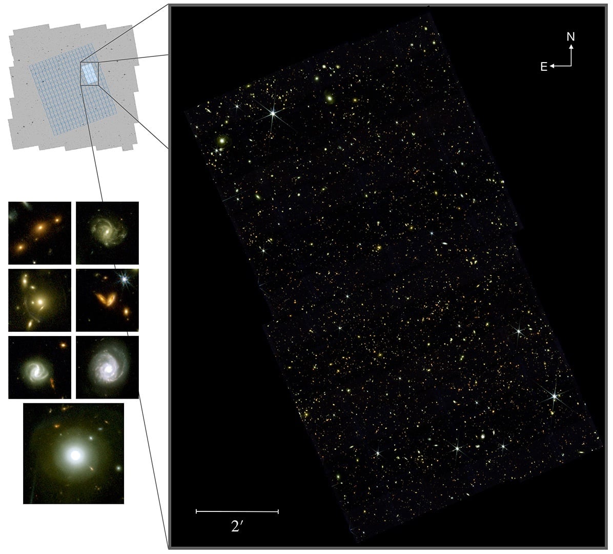 The image above is a mosaic of images taken in early January by JWST's Near-Infrared Camera (NIRCam) and Mid-Infrared Instrument (MIRI). The survey will It will gather additional data in another 77 pointings of the telescope in April and May and then a remaining 69 in December and January 2024.