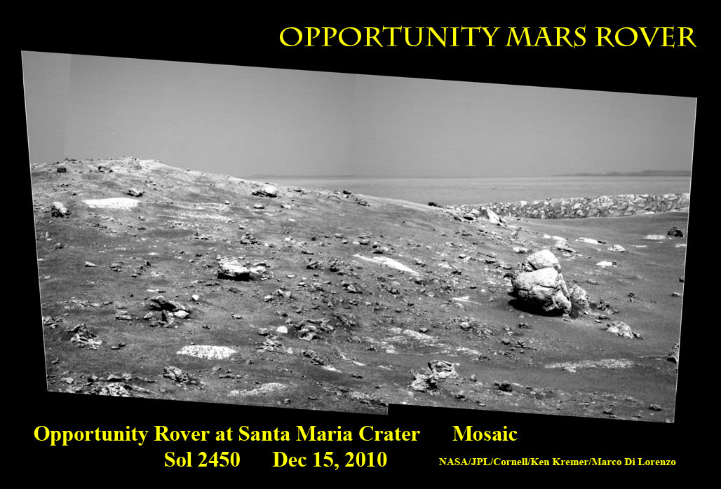 [caption id="attachment_81743" align="aligncenter" width="580" caption="Opportunity Sol 2450 (Dec 15, 2010) 90 degree perspective projection around Santa Maria crater. Credit: NASA/JPL/Cornell/Midnight Mars Browser "]