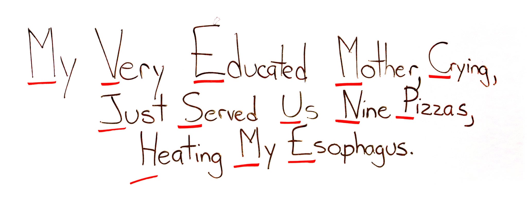 from Caltech (one of the folks responsible for all this planet arguing) has suggested "Mean Very Evil Men Just Shortened Up Nature."