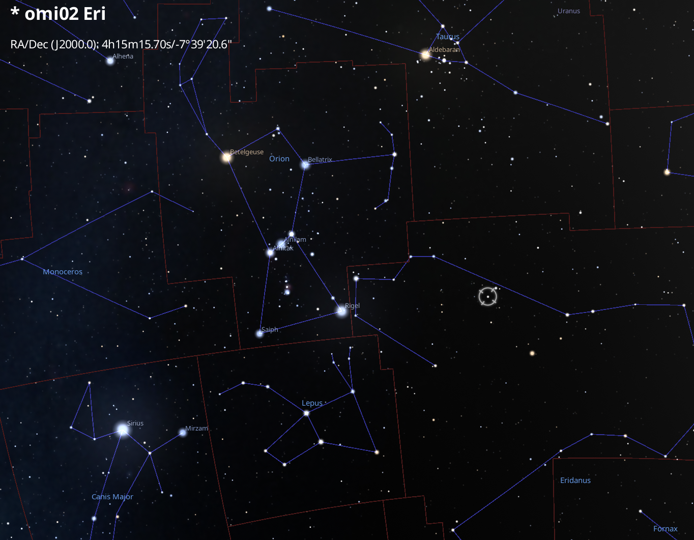 The location of 40 Eridani in the sky. Credit: Stellarium.