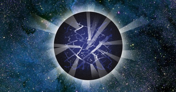 Artist's conception of a starquake cracking the surface of a neutron star. Credit: Darlene McElroy of LANL[/caption]