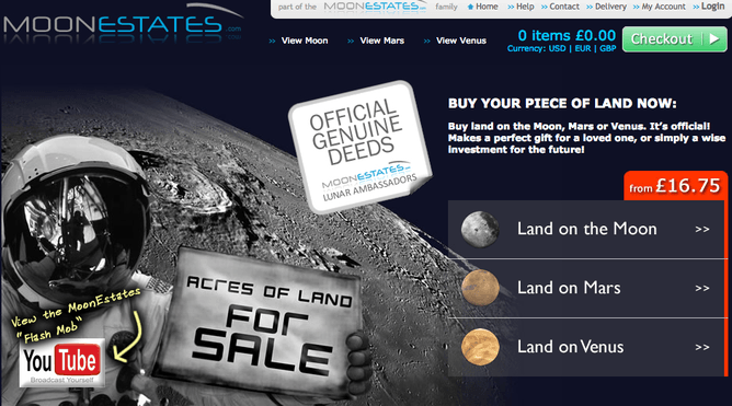 is offering single acre plots for just £16.75 (that's about $27 US). More importantly, large corporations, entrepreneurs, and even some politicians are eying property on the Moon, hoping to get at its rich resources before long.