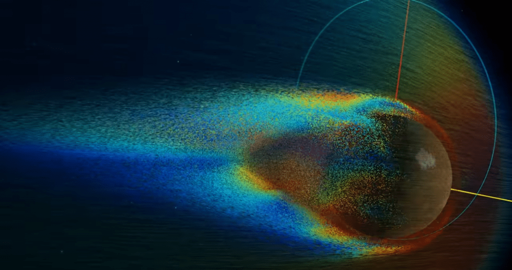 The solar wind is a stream of charged particles that slams into everything around the Sun at almost a million miles per hour, or 1.6 million kilometers per hour. It interacts with everything in the Solar System. The wind itself is magnetized, so it actually has difficulty penetrating the upper atmosphere of non-magnetized Mars. Instead, it creates currents in the ionosphere. That actually strengthens the magnetic field, producing the induced magnetosphere. It's only now, thanks to this study, that scientists are understanding how this all works.