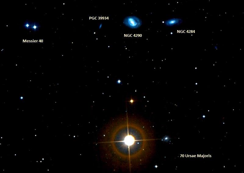 The double star Messier 40 (Winnecke 4), along with PGC 39934, NGC 4290 and NGC 4284. Credit: Wikisky