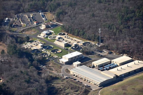 Conventional waste treatment plants, like this one in England, take several days to treat waste. The anerobic system tested by the Penn State team treated waste in as little as 13 hours. Image: Nick Allen, CC BY-SA 4.0[/caption]