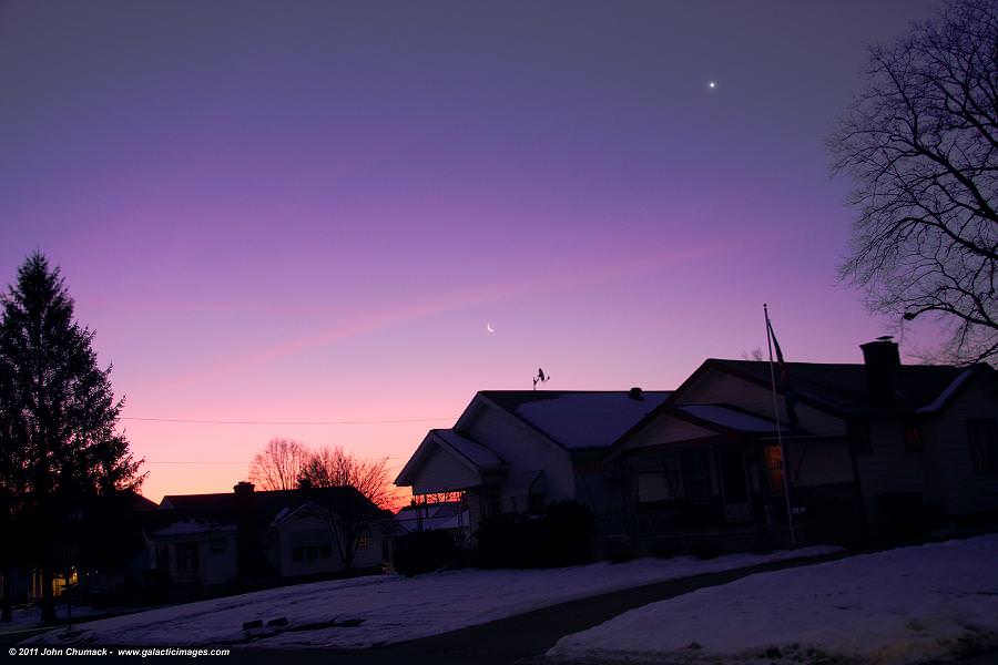 [/caption] If you're an early riser, then perhaps you've noticed Kepler's Laws in action? No, it's not a new Bruce Willis movie, just the inevitable pairing of the waning crescent Moon and shining Venus. As you can see from this great photo taken last month by John Chumack, it happens as regular as clockwork... and it's about to happen again. But what is it about such pairings that command our attention? Step inside and find out!