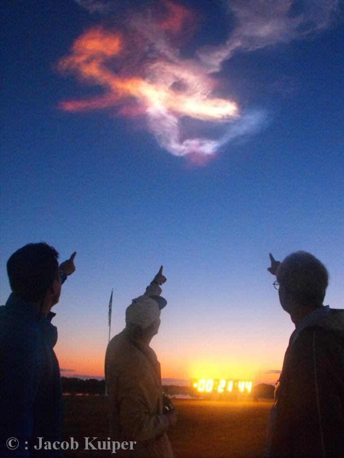 , its exhaust plume turned into a magnificently colorful panorama. Generally, this continues until about 40 minutes or more after blast off", Kuiper told me as