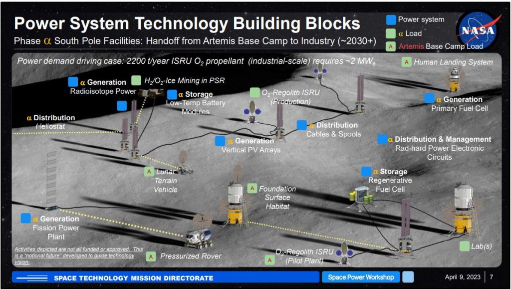 Governments around the world are beginning to realize the critical role they will play in the potential new industrial age, and America's House of Representatives took a step towards accepting that responsibility when it gave NASA 6 months to come up with a plan for developing a plan for electrical power infrastructure on the Moon. In response, NASA's Principal Technologist for Power and Energy Storage, Dr. John H Scott, presented a preliminary plan for developing that infrastructure at the Space Power Workshop, held in Torrance, California, at the end of April.