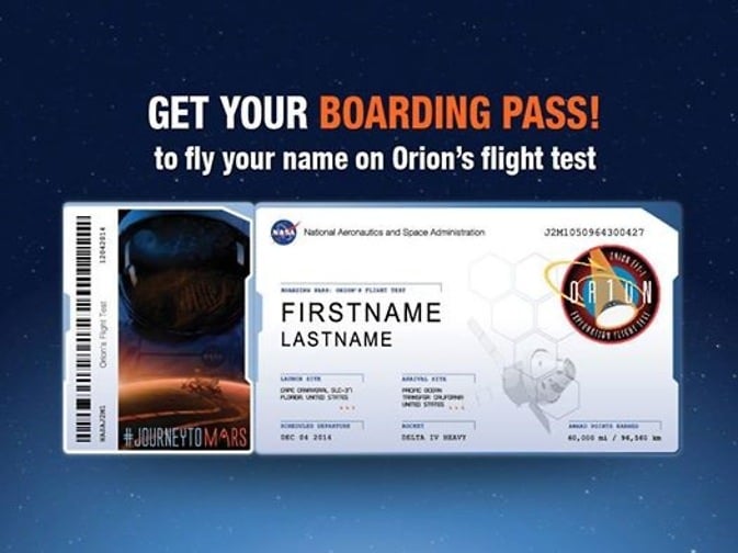 Orion EFT-1 Boarding Pass sample. Credit: NASA[/caption]