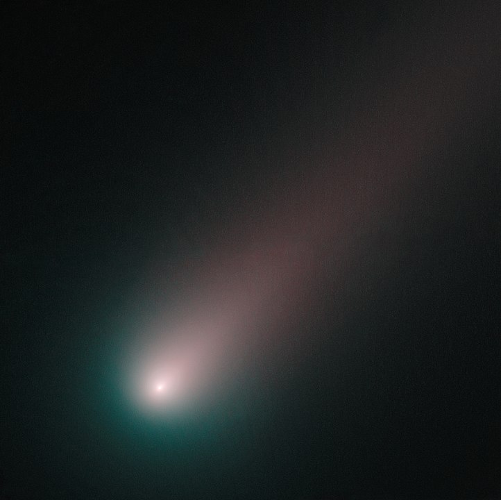 Comets are small bodies in the Solar System with significant ice content. They normally follow long elliptical orbits that take them close to the Sun. As they approach the Sun, the comet warms and some of the ice out-gasses, dragging dust along with it. This creates a coma and a tail that stretches away from the Sun.