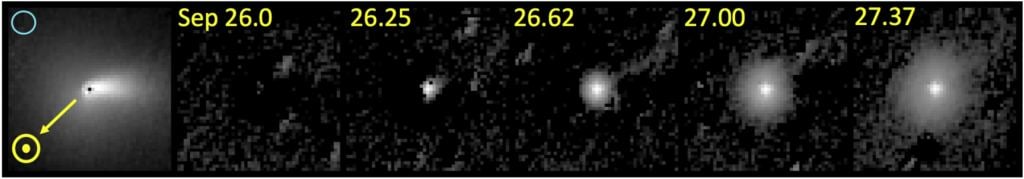 https://gfycat.com/silentsecondbellsnake This animation shows an explosive outburst of dust, ice and gases from comet 46P/Wirtanen that occurred on September 26, 2018 and dissipated over the next 20 days. The images, from NASA’s TESS spacecraft, were taken every three hours during the first three days of the outburst. Credits: Farnham et al./NASA