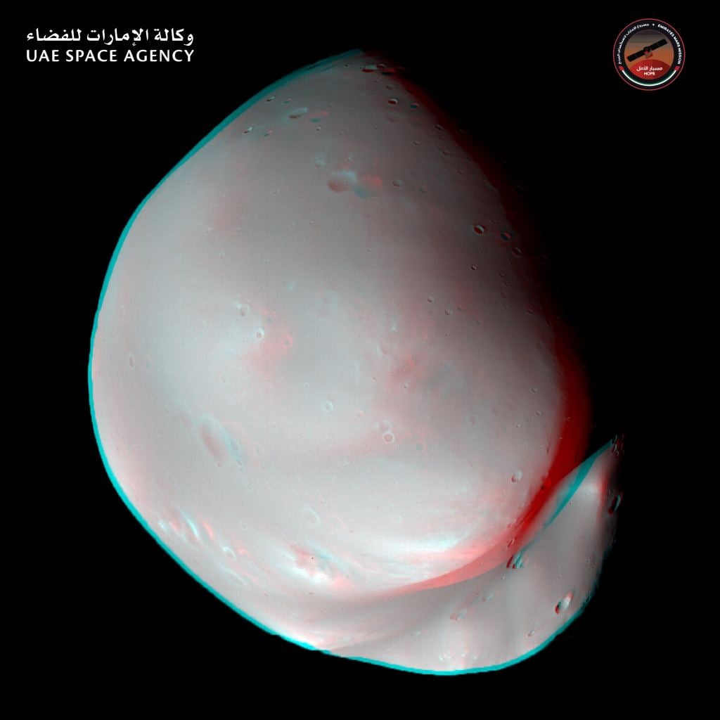 On Twitter, the Hope mission team said the camera obtained 27 images of Deimos over the course of 25 minutes thanks to a close flyby of Deimos.