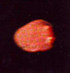 Voyagers 1 and 2 gave us the first blurry views of the moon. NASA's only other Jupiter orbiter Galileo has provided us with the best images of Amalthea to date, with a flyby 374,000 kilometers distant on November 26, 1999. Those images reveal a misshapen world, not unlike Mars' moon Deimos. From the surface of Amalthea, Jupiter would provide an amazing sight, spanning nearly half the sky at 42 degrees across.