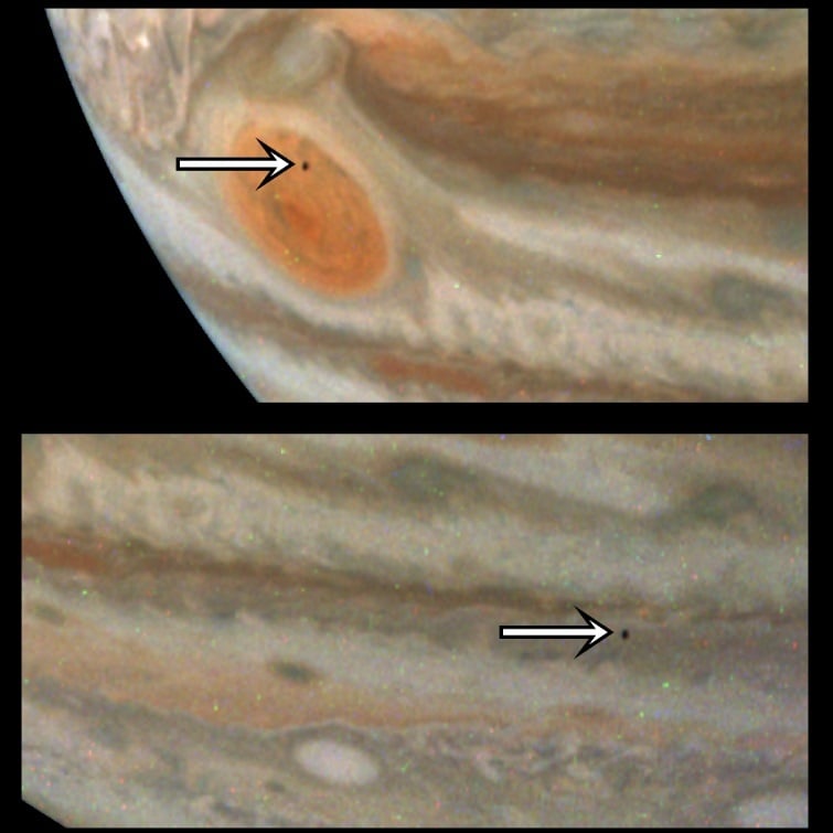 It's tiny, but it's there. By now, we're all used to seeing amazing photos of Jupiter courtesy of NASA's Juno mission on a routine basis. Many of these are processed by volunteer 'citizen scientists,' and they show the swirling cloud-tops of Jove courtesy of the spacecraft's JunoCam in stunning detail.