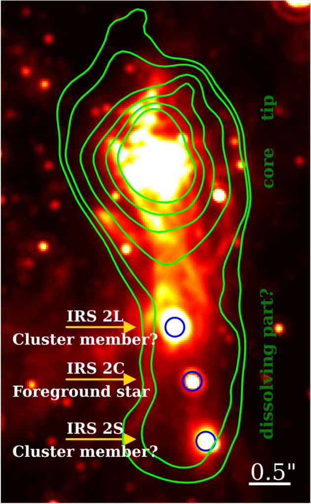 IRS 13 is only about 0.15 parsecs from Sgr A*, or about half of one light-year. That's extraordinarily close. This region is a busy place, and astronomers have been working to understand the galactic center more thoroughly for decades. When this team of researchers examined IRS 13 more closely, they found that the 33 newly-formed stars, called young stellar objects (YSOs), are located in only one part of the cluster. And all but one of the 33 new YSOs are massive.