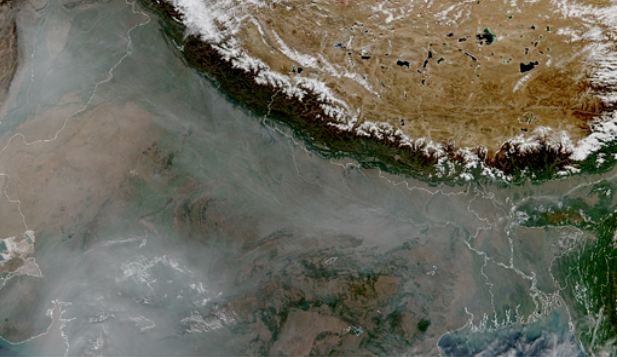 But as the image shows, the Himalayas also make smog concentrate here, right where so many people live. The satellite image shows how smog is a health hazard for hundreds of millions of people in the country's critical agricultural region.