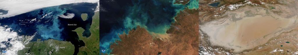 "The turquoise colour that's visible around Cuba and the Bahamas in the bottom-left image above comes from sediment in the shallow waters around the continental shelf," said NOAA's Dr. Satya Kalluri, Joint Polar Satellite System program scientist. Sediment around continental shelves is called neritic sediment. It's carried from land into the ocean by wind, rivers, flowing ice, and other processes. (Obviously, not by ice in the Caribbean. Please don't email me.)