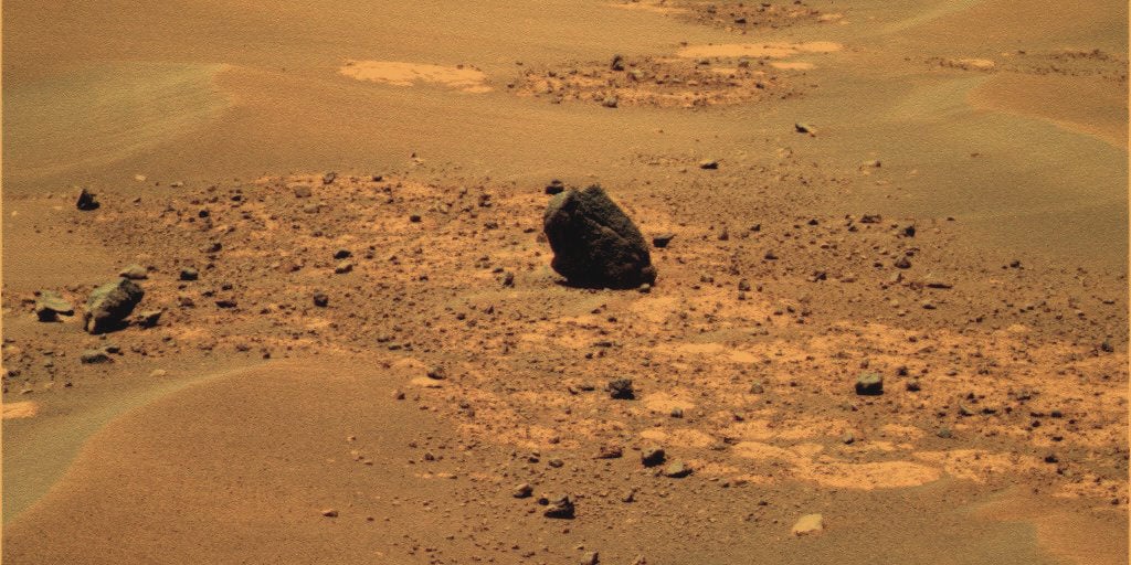 Opportunity has come upon another big rock on Mars. But what is it? Another meteorite? A big clump of ejecta from an old impact? There's lots of other debris scattered around this area as well. The rock has been named "Marquette Island," staying with the island theme for the other meteorites Oppy has come across, and the rover may take the "opportunity" to get closer to this rock and check it out, given the sand dunes surrounding it don't provide too much of an obstacle. So maybe next week we'll find out what it is. But in the meantime, enjoy these color and 3-D images (see more below) of the rock via Stu Atkinson from