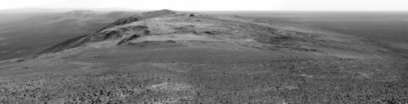 Sol 3906, January 19, 2015. Summit panorama from Cape Tribulation from the Opportunity Mars Rover. Credit: NASA/Arizona State University. [/caption]