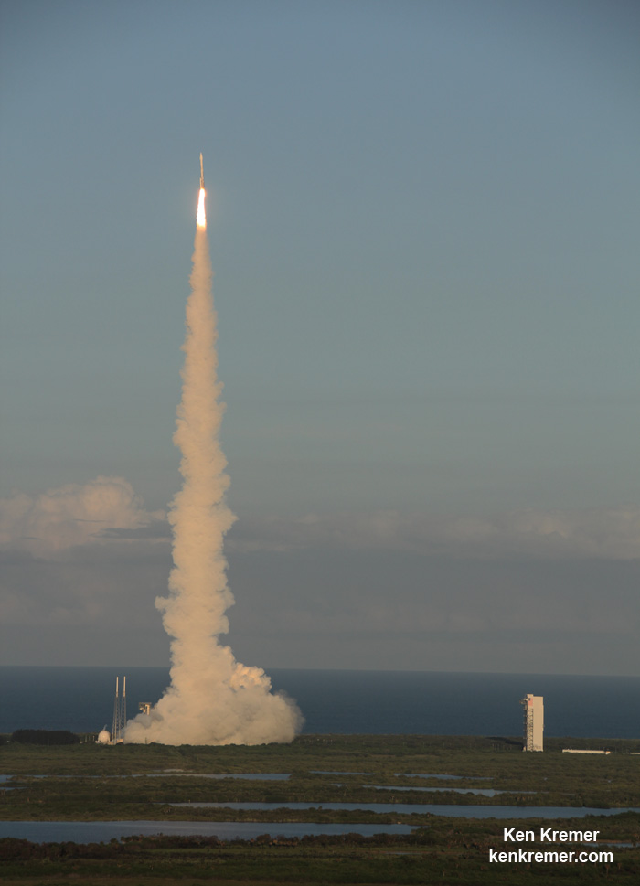 The 189 foot tall ULA Atlas V rocket launched in the rare 411 configuration for only the 3rd time on this mission - which is the 65th for the Atlas V.
