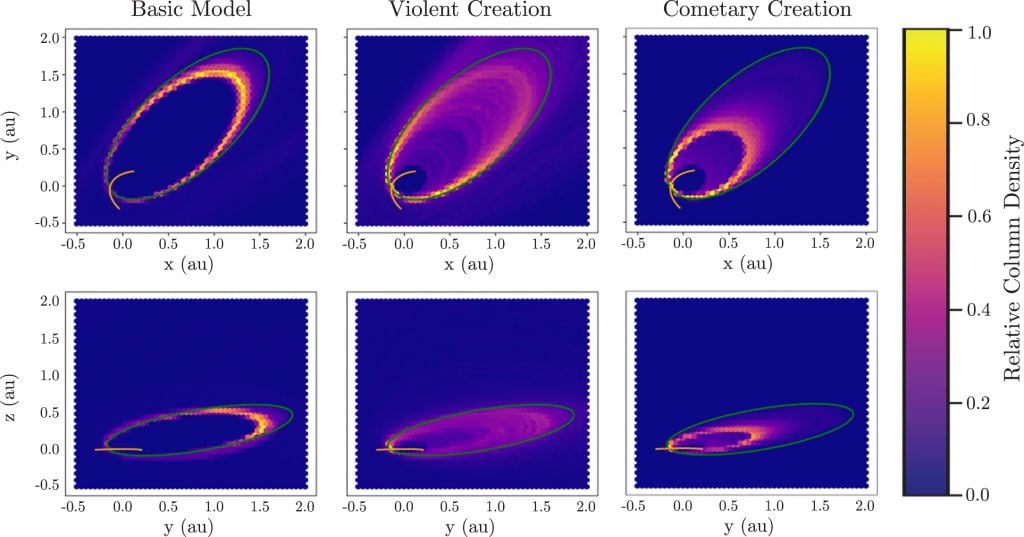 They used data from the Parker Solar Probe, which measured the size and composition of Geminid dust particles as well as their relative speed and direction. The team then compared the observed data with three models: a "basic" model where particles were simply set along the orbital path, a cometary model which trickled particles into the debris path gradually, and a violent origin model, which assumed particles were released in a single burst.